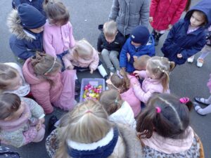 Quelle surprise… en arrivant, les élèves ont découvert que les cloches de Pâques avaient caché de nombreux œufs dans la cour !